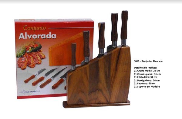 01 – Chaira Média 7″ ( Cabo:130 mm / Lâmina: 175 mm / Circunferência: 8 mm)Conjunto ideal para quem gosta de fazer churrasco.