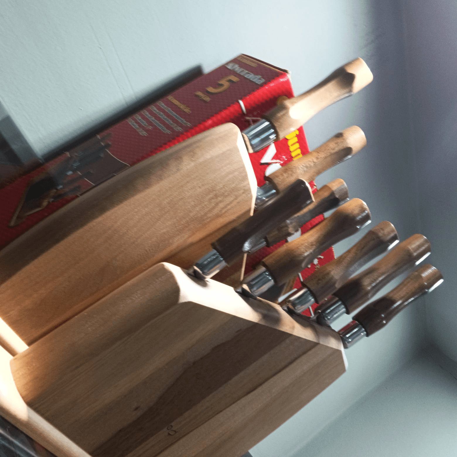 com cabo de madeira nobre, guajuvira e empunhadura anatômica.