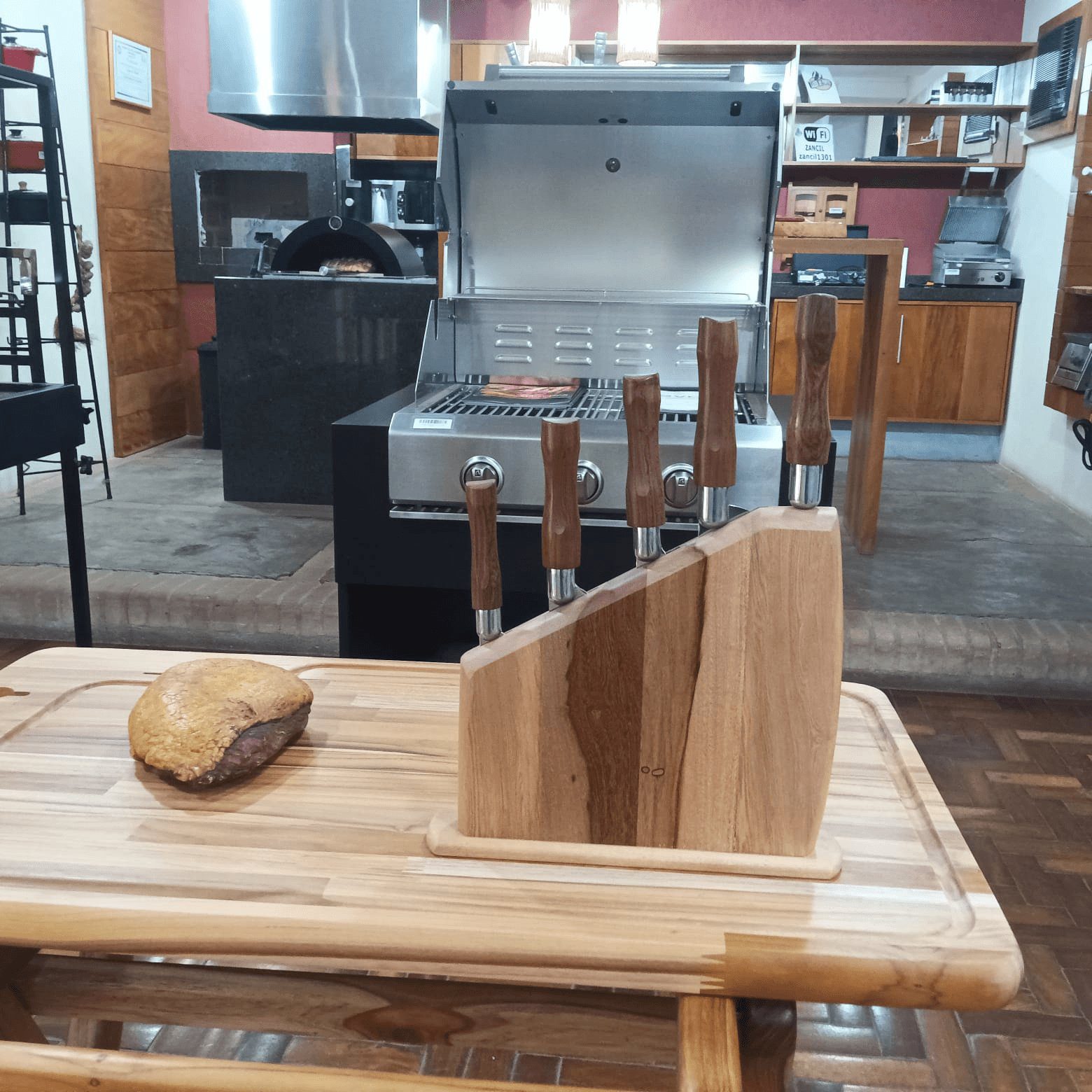 Conjunto Premium para Churrasco em Aço Cirúrgico e Madeira Nobre
