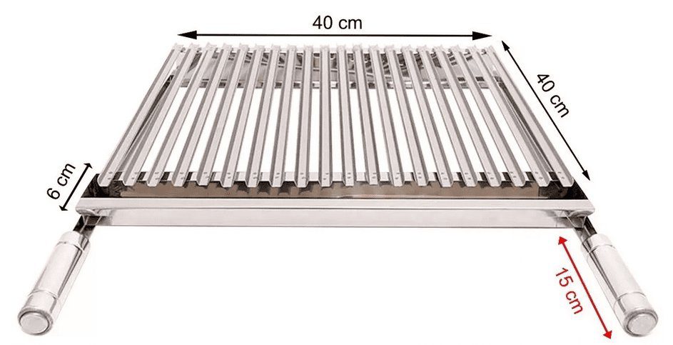Grelha Argentina em aço inox com exclusivo cabo de madeira revestido de alúminio;