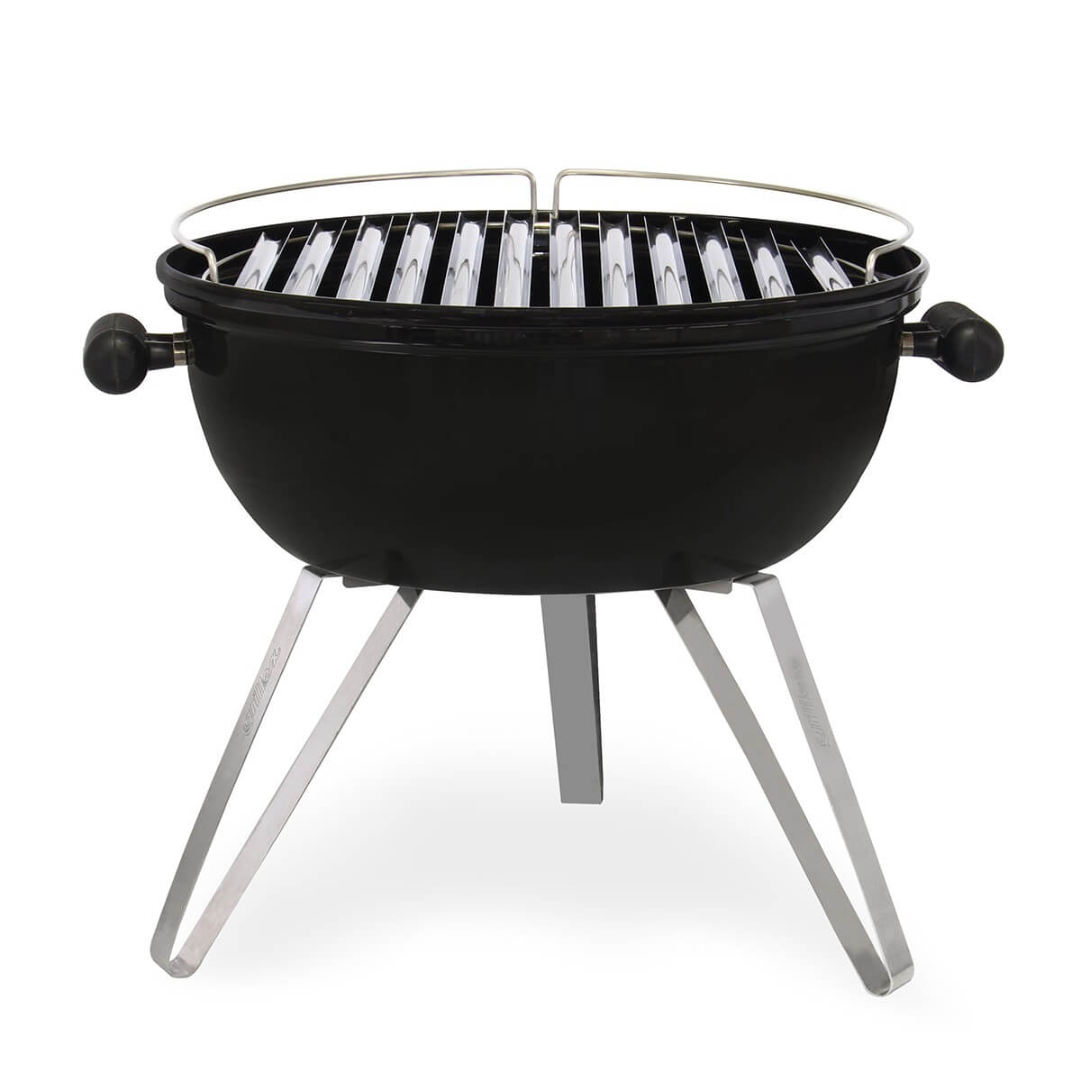 Material: Corpo em alumínio, porta carvão em aço carbono, grelha, braseador e tripé em inox