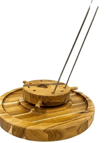 Uma peça indispensável para seu cantinho do churrasco. Feito em Madeira Teca com belíssimas tonalidades, livre de bactérias. Sirva seus espetos com praticidade e ainda utilize as laterais do suporte para servir sua família e amigos com muito estilo e bom gosto.
