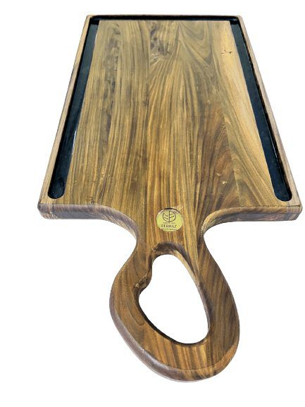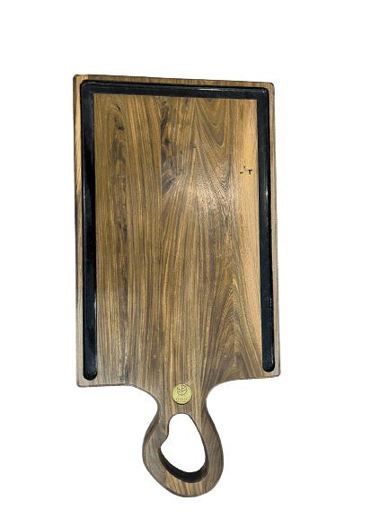- Peça Única: Devido à natureza artesanal da tábua, cada peça pode ter variações únicas na combinação de cores de resina e padrões de grãos de madeira.