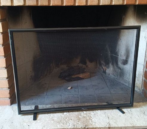A tela é construída com uma estrutura retangular de metal preto, que é durável e resistente ao calor. A cor preta não apenas confere um visual elegante e discreto, mas também é funcional, uma vez que pode ajudar a ocultar a sujeira e a fuligem que podem se acumular com o uso regular da lareira.